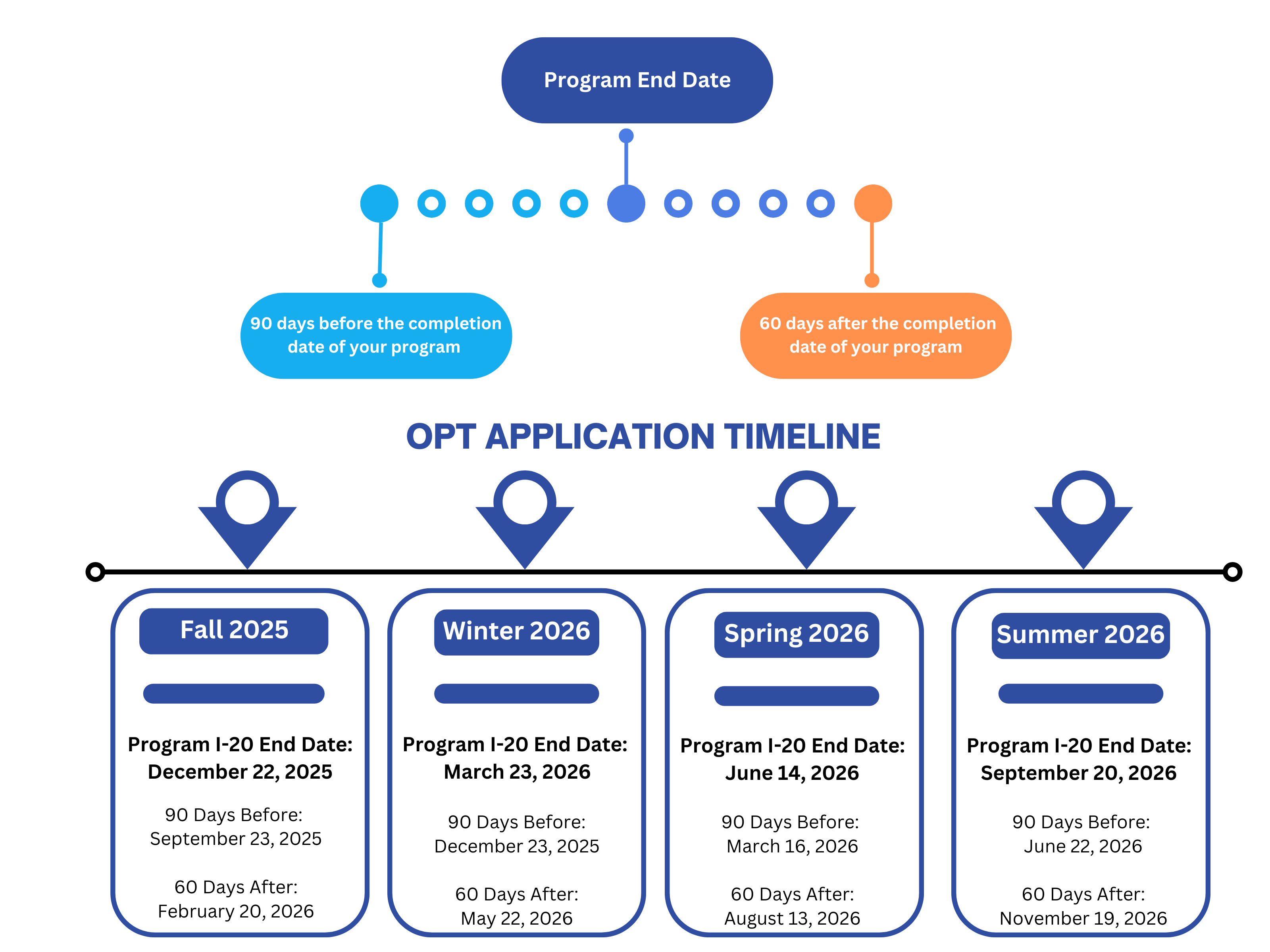 Eligible students are recommended to apply and file for post-completion no earlier than 90 days prior to your program completion date and no later than 60 days after the program completion date.